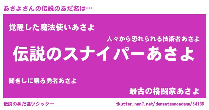 | 胡散臭い通販商品みたいなあだ名 | 『必ず成功する霊験あらたかなお札…その名も「あさよ」』 |