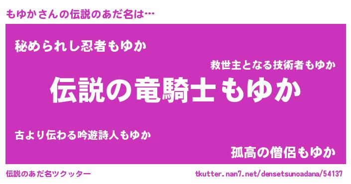 | 欧米人風あだ名 | 『ケンブリッジもゆか』『マイケルもゆか』 |