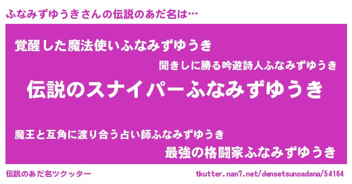 | 男性向けラノベタイトル風あだ名 | 『ふなみずゆうきの憂鬱』 |