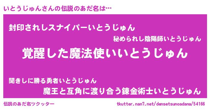 | ヒーロー風カッコイイあだ名 | 『天弓騎士イト』『究極戦士イトウジュン』 |