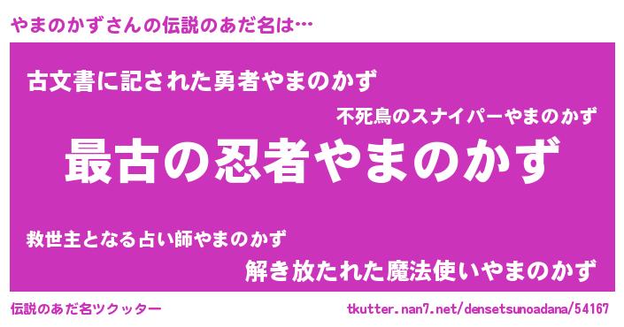 | ファンタジー風あだ名 | 『エターナルヤマノカズー』『ゼヤマトゥ』 |