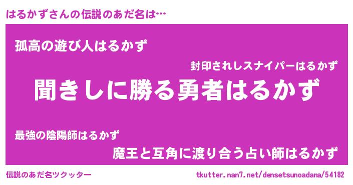 | 男性向けラノベタイトル風あだ名 | 『はるかずという概念が存在しない退屈な世界 』 |