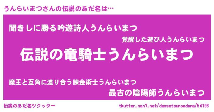 | 女子向けラノベタイトル風あだ名 | 『うんらいまつなんてお断りですっ。』 |