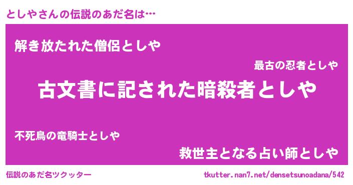 | ヒーロー風カッコイイあだ名 | 『ネオトシヤ』『魔戒騎士トシ』 |