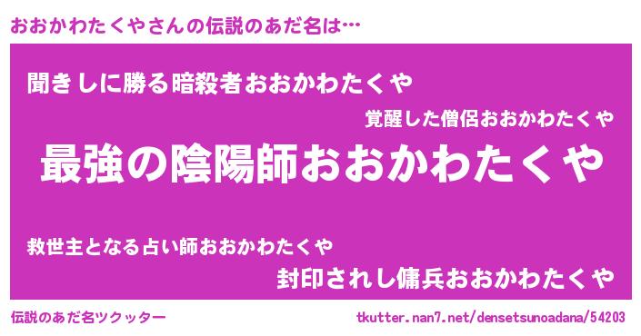 | ファンタジー風あだ名 | 『エターナルオオカワタクヤー』 |