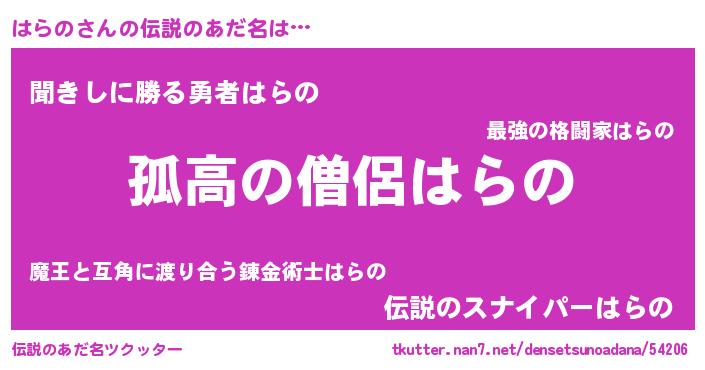 | ヒーロー風カッコイイあだ名 | 『ウルトラ戦士ハラノ』『暗黒騎士ハラ』 |