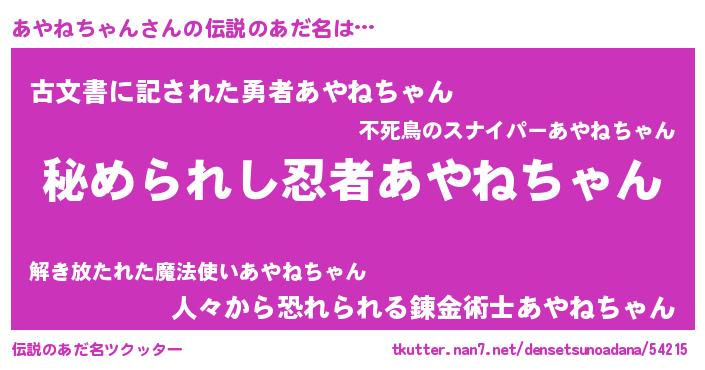 | ファンタジー風あだ名 | 『エターナルアヤネチャンー』 |