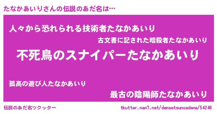 | 胡散臭い通販商品みたいなあだ名 | 『モテモテ間違いなし霊験あらたかなお札…その名も「たなかあいり」』 |