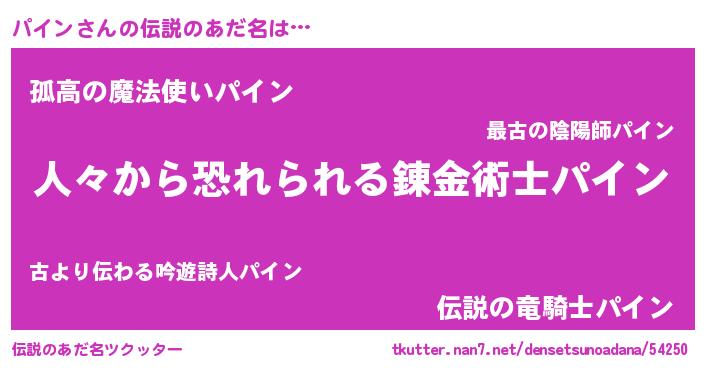 | 意味不明あだ名 | 『自称パイン』『たけのこ科パイン属』 |