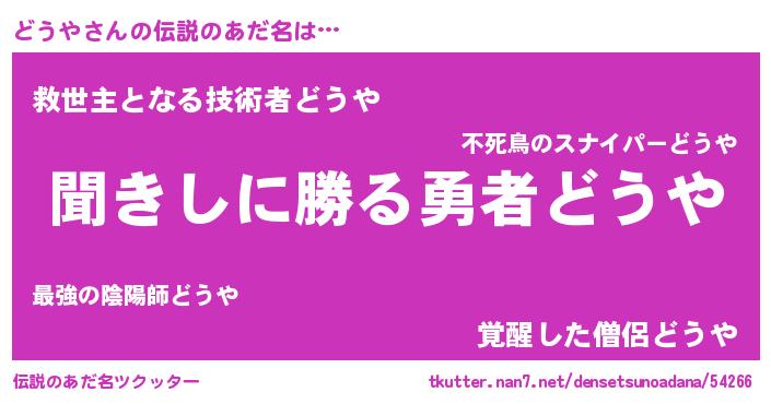 | 意味不明あだ名 | 『自称どうや』『永久保存どうや』 |
