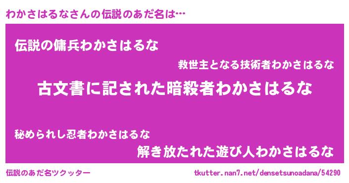 | 女子向けラノベタイトル風あだ名 | 『わかさはるなストレイドッグス』 |