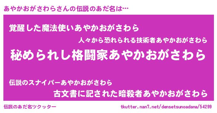 | ファンタジー風あだ名 | 『エターナルアヤカオガサワラー』 |