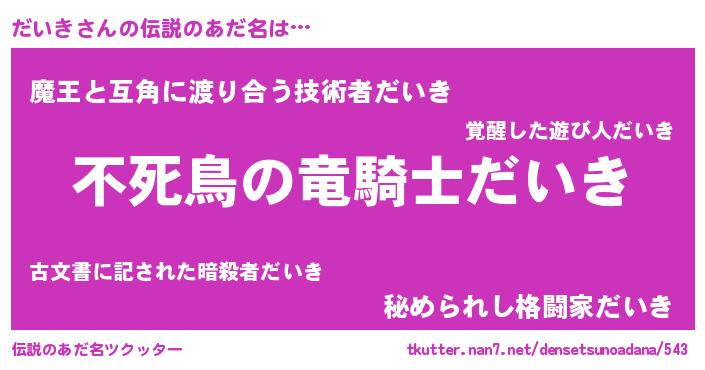 | 女子向けラノベタイトル風あだ名 | 『だいき姫と円卓の騎士』 |
