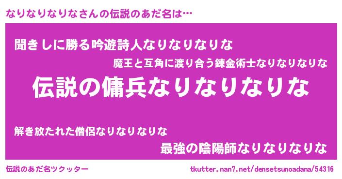ヒーロー風カッコイイあだ名 | 『仮面ナリダー』『ネオナリナリナリナ』 |
