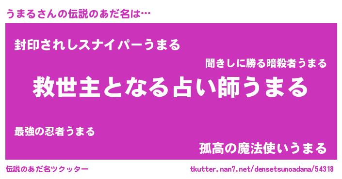| ヒーロー風カッコイイあだ名 | 『天空の使者うまる』『スーパーウマル』 |