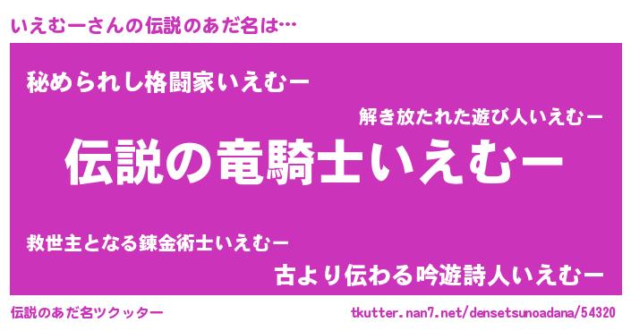 | ヒーロー風カッコイイあだ名 | 『スーパーイエムー』『仮面イエダー』 |