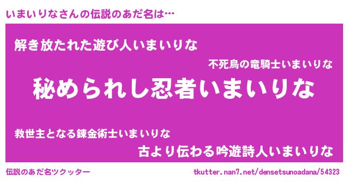 | 意味不明あだ名 | 『いまいりなフォーエバー』 |