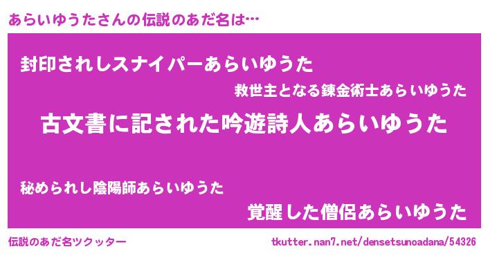 | ヒーロー風カッコイイあだ名 | 『ネオアライユウタ』『仮面アラダー』 |