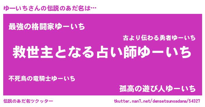 | ヒーロー風カッコイイあだ名 | 『慈愛の使者ゆーいち』『銀牙騎士ユー』 |