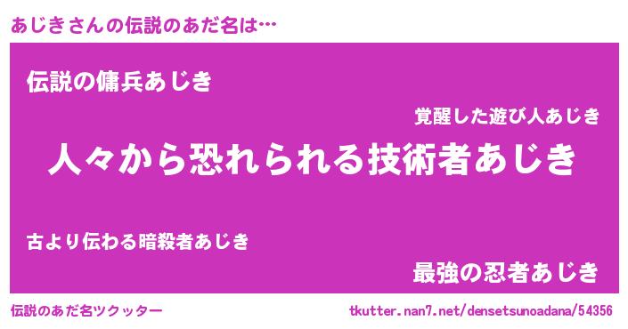 | ヒーロー風カッコイイあだ名 | 『正義の使者あじき』『スーパーアジキ』 |