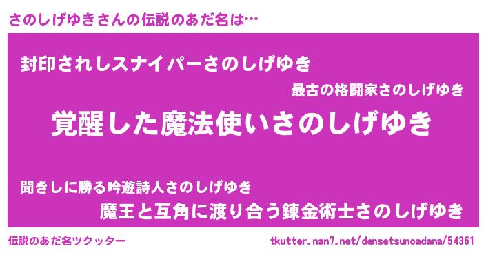 | 男性向けラノベタイトル風あだ名 | 『この素晴らしい世界にさのしげゆきを!』 |