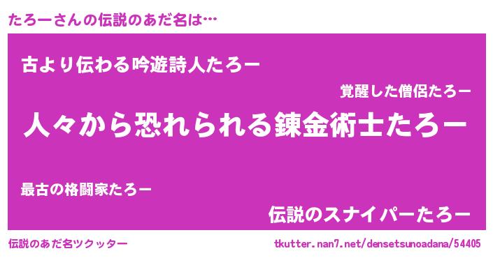 | 意味不明あだ名 | 『住所不定無職たろー(86歳)』『自称たろー』 |