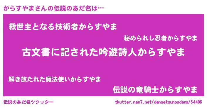 | ヘコむあだ名 | 『からすやま(笑)』『からにー』 |