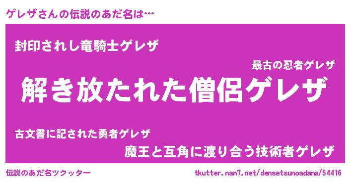 | 意味不明あだ名 | 『とにかく怪しいゲレザ』『自称ゲレザ』 |