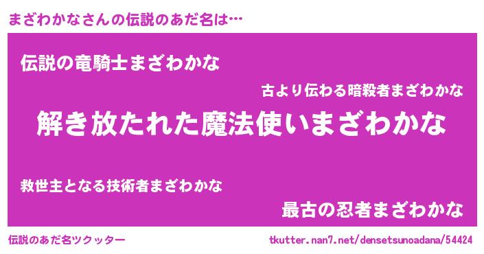 | 女子向けラノベタイトル風あだ名 | 『乙女ゲームの破滅フラグしかない悪役まざわかなに転生してしまった…』 |