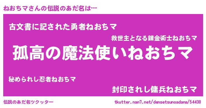 | 女子向けラノベタイトル風あだ名 | 『ねおちマは平凡を望む』『闇のねおちマ』 |