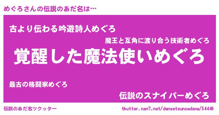 | 男性向けラノベタイトル風あだ名 | 『めぐろに滅ぼされるだけの簡単なお仕事です』 |