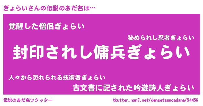 | ファンタジー風あだ名 | 『カークギョラー』『ゼギョトゥ』 |