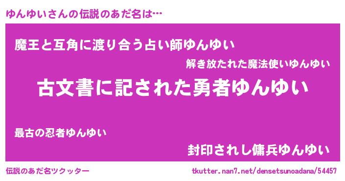 | ヒーロー風カッコイイあだ名 | 『ネオユンユイ』『友情の使者ゆんゆい』 |
