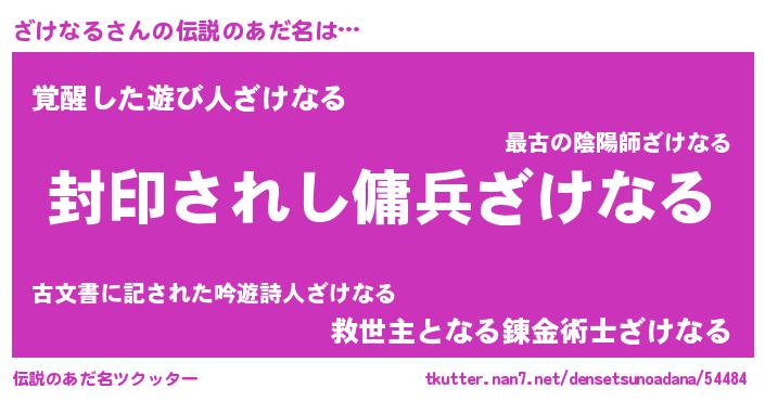 | 男性向けラノベタイトル風あだ名 | 『Re:ざけなるから始める異世界生活』 |
