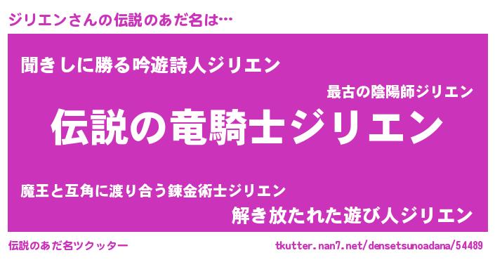 | 女子向けラノベタイトル風あだ名 | 『ジリエンなんてお断りですっ。』 |