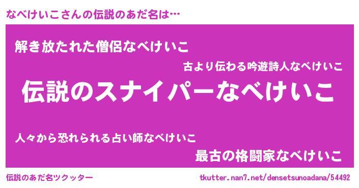 | 男性向けラノベタイトル風あだ名 | 『なべけいこの憂鬱』 |