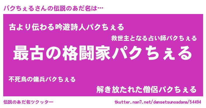| ファンタジー風あだ名 | 『エターナルパクチェルー』 |
