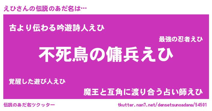 | 男性向けラノベタイトル風あだ名 | 『Re:えひから始める異世界生活』 |