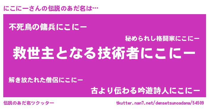 | 男性向けラノベタイトル風あだ名 | 『ノーゲーム・ノーニコニー』 |
