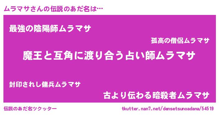| ヒーロー風カッコイイあだ名 | 『愛の使者ムラマサ』『ネオムラマサ』 |