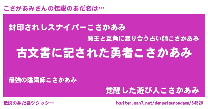 | 意味不明あだ名 | 『永久保存こさかあみ』 |