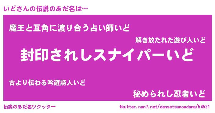 | ヘコむあだ名 | 『いどもー』『なまこ酢』『いどっぺ』 |