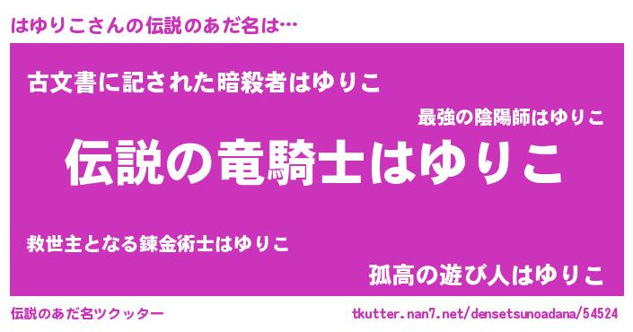 | ヒーロー風カッコイイあだ名 | 『スーパーハユリコ』『ネオハユリコ』 |