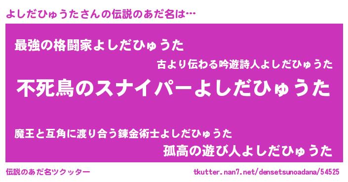| 意味不明あだ名 | 『自称よしだひゅうた』 |