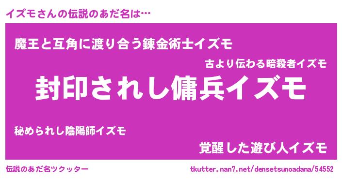 | ヒーロー風カッコイイあだ名 | 『スーパーイズモ』『正義の使者イズモ』 |