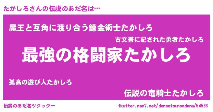 | ヒーロー風カッコイイあだ名 | 『ウルトラたかしろマン』『仮面タカダー』 |