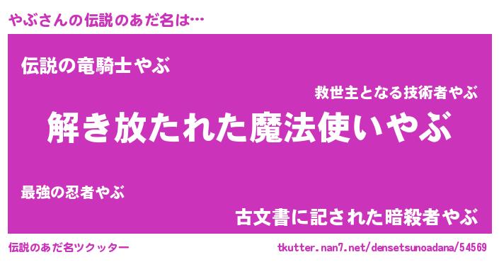 | ヘコむあだ名 | 『やぶお』『やぶにー』『やぶ(苦笑)』 |