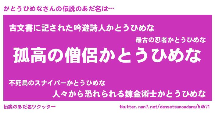 | 意味不明あだ名 | 『とにかく怪しいかとうひめな』 |