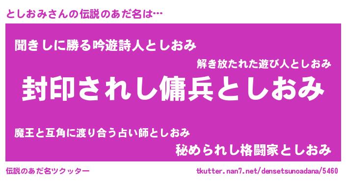 | 意味不明あだ名 | 『住所不定無職としおみ(39歳)』 |