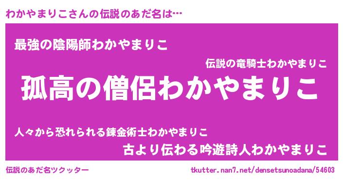 | ポケモン風あだ名 | 『ヒワカヤマリコ』『ワカゴンZ』 |